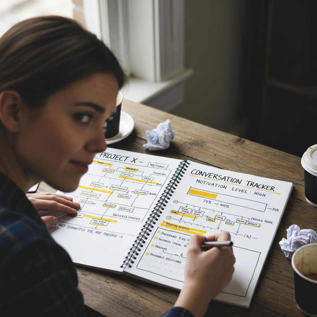 - Buduj bank tematów – notuj ciekawe wątki i anegdoty.