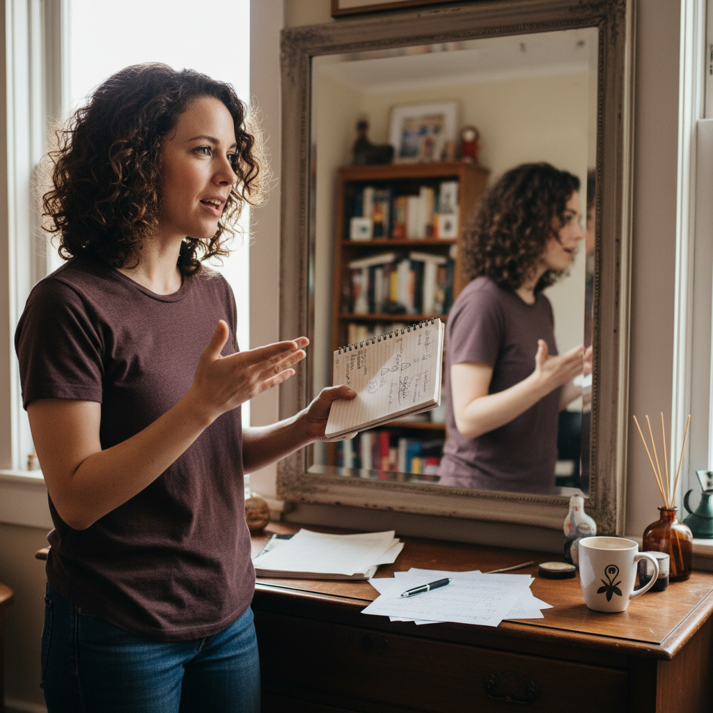 - Ćwiczenie na głos: Opowiadaj żarty przed lustrem lub nagrywaj się – usłyszysz, gdzie tracisz płynność.